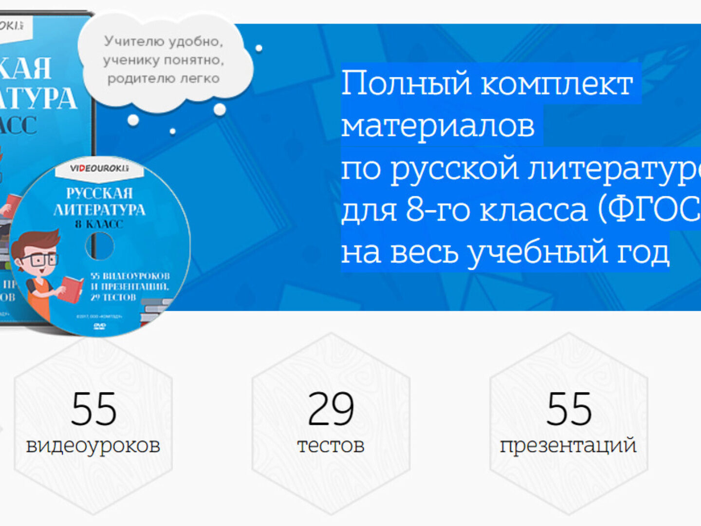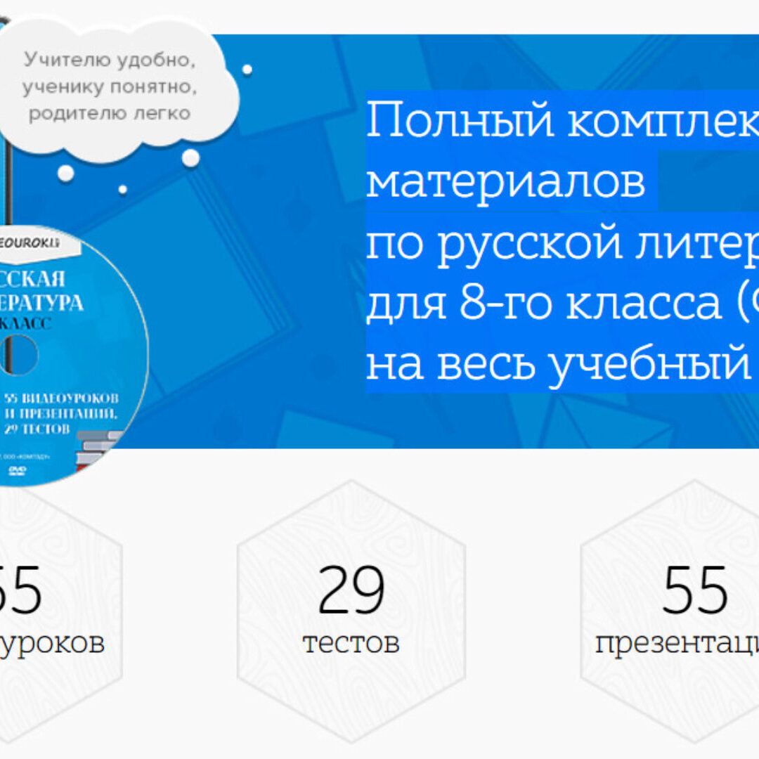 74 видеоурока по русской литературе для 10 класса Ещё в комплекте вы найдёте 74 теста в трёх форматах 74 презентации Разработан в помощь учителям русской литературы и учащимся 10-го класса. Ориентирован на учебник Ю. В. Лебедева. Соответствует ФГОС.