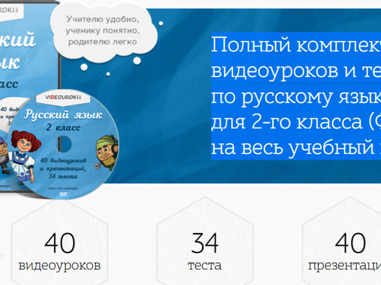 - Содержит 40 видеоуроков, 34 теста и 40 презентаций