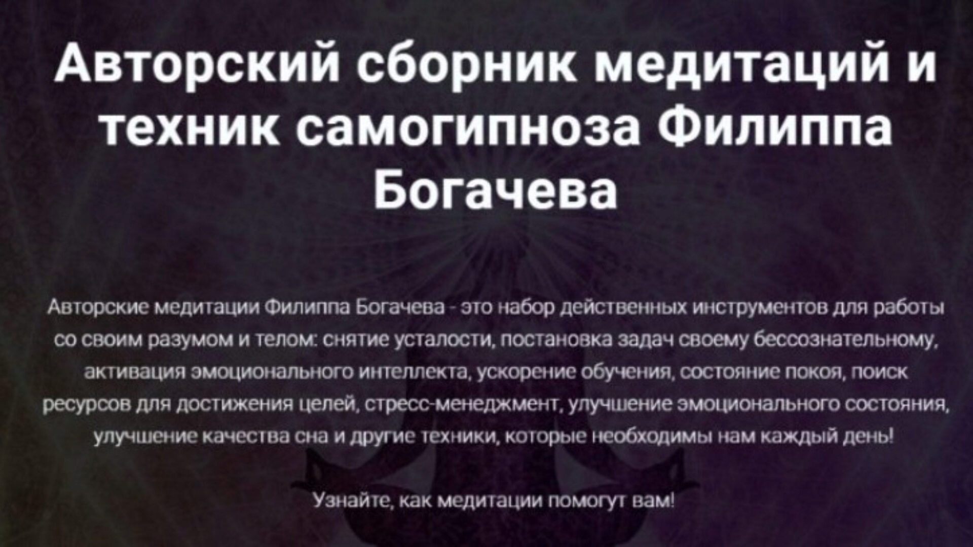 Филипп Богачев «Авторский сборник медитаций и техник самогипноза» — WebTrening