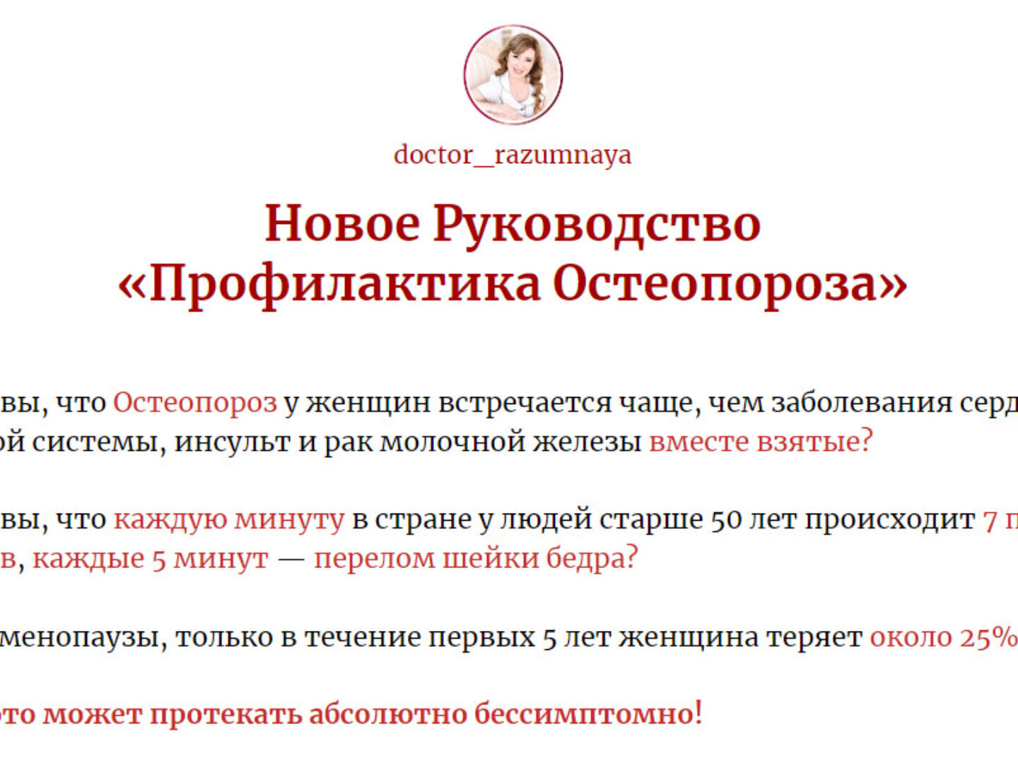 Отзывы о курсе «Руководство Профилактика остеопороза» от Флориды Разумной