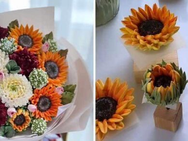 - Подсолнух: серединка и отсадка цветка, окрашивание середины, бутон