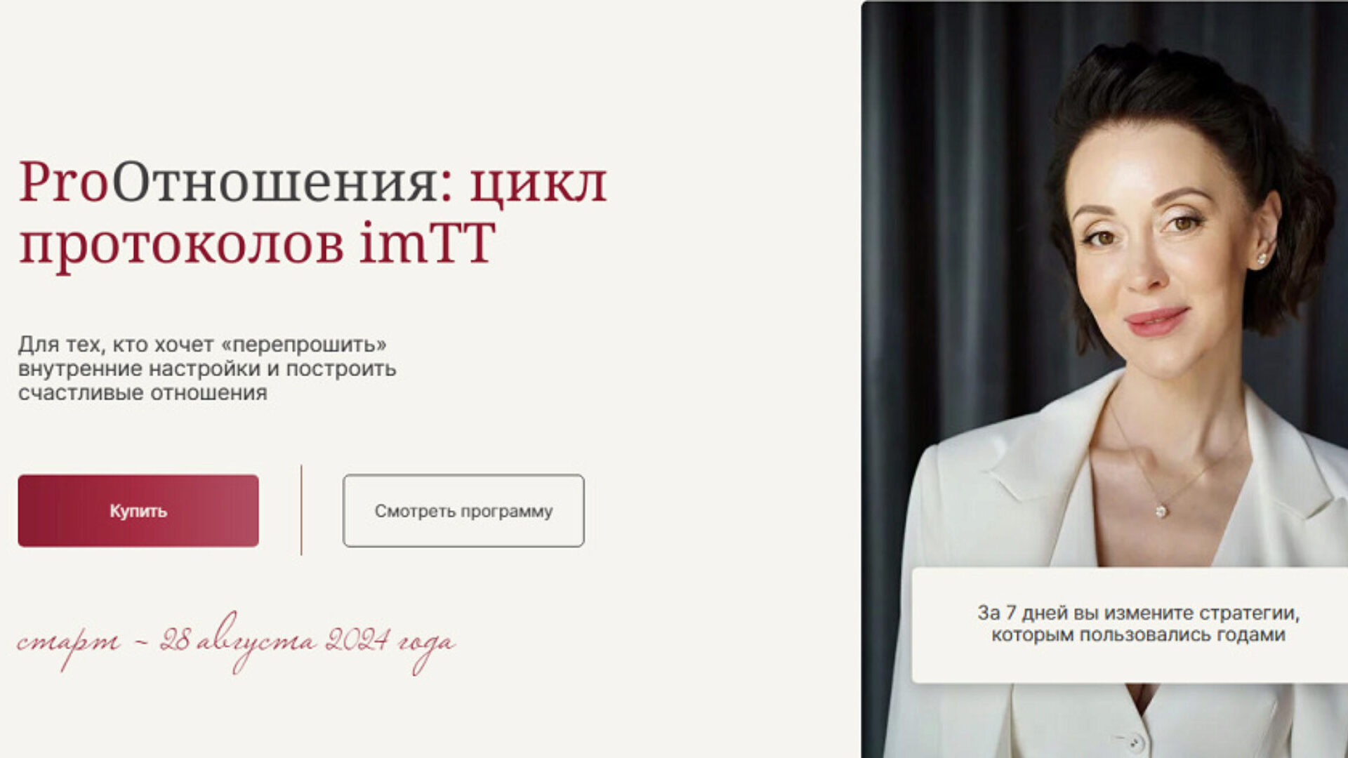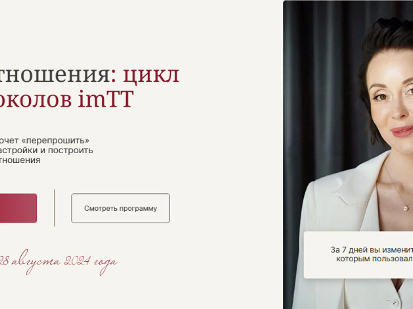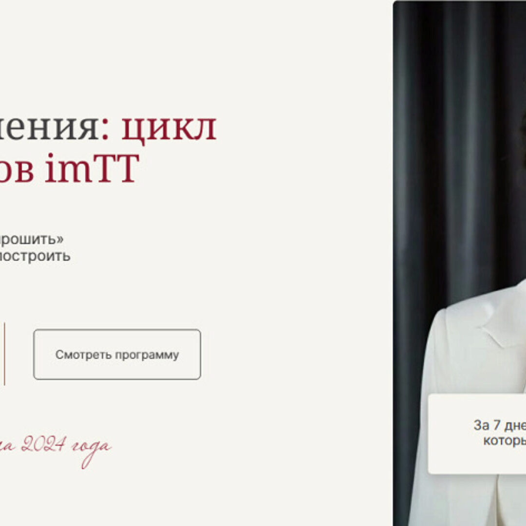 Формат: 7 дней — 7 уроков. Цикл из 5 протоколов imTT. 60 дней доступа - возможность пройти цикл 2-3 раза