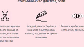 ОНЛАЙН-КУРС СОСТОИТ ИЗ 10 УРОКОВ: - Приветствие от меня - Как выбрать плойку - Какие укладочные средства использовать - Прическа 1 - крупные локоны от лица + домашнее задание - Прическа 2 - собранные волосы + домашнее задание - Прическа 3 - голивудские локоны + домашнее задание - Прическа 4 -