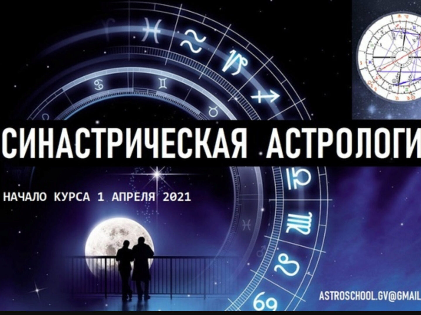 Начало 1 апреля 2021г. в 19:00 мск. 1 апреля начинается онлайн курс, посвященный изучению Синастрий – раздела астрологии, который изучает взаимодействия людей. Занятия будут проходить по четвергам с 19.00 до 21.15 мск. (продолжительность лекции 3 академических часа). Курс рассчитан на 4 месяца.