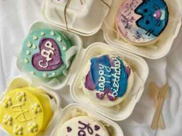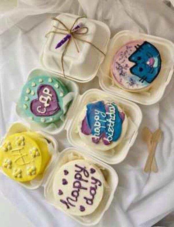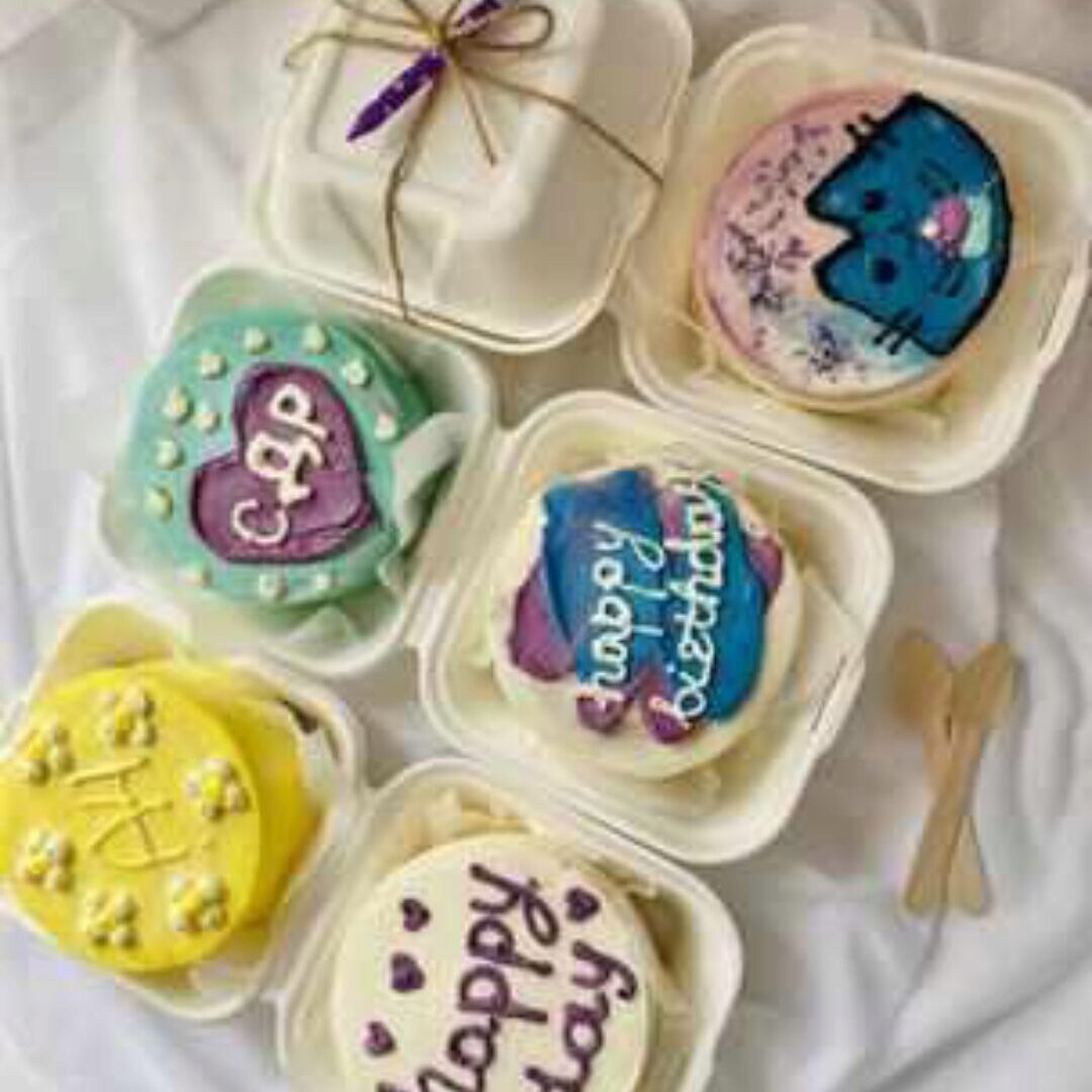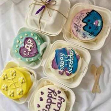 Бенто торты - новый тренд! Это миниатюрные тортики весом 500гр с рисунками и надписями в корейском стиле в таких милых одноразовых коробочках.