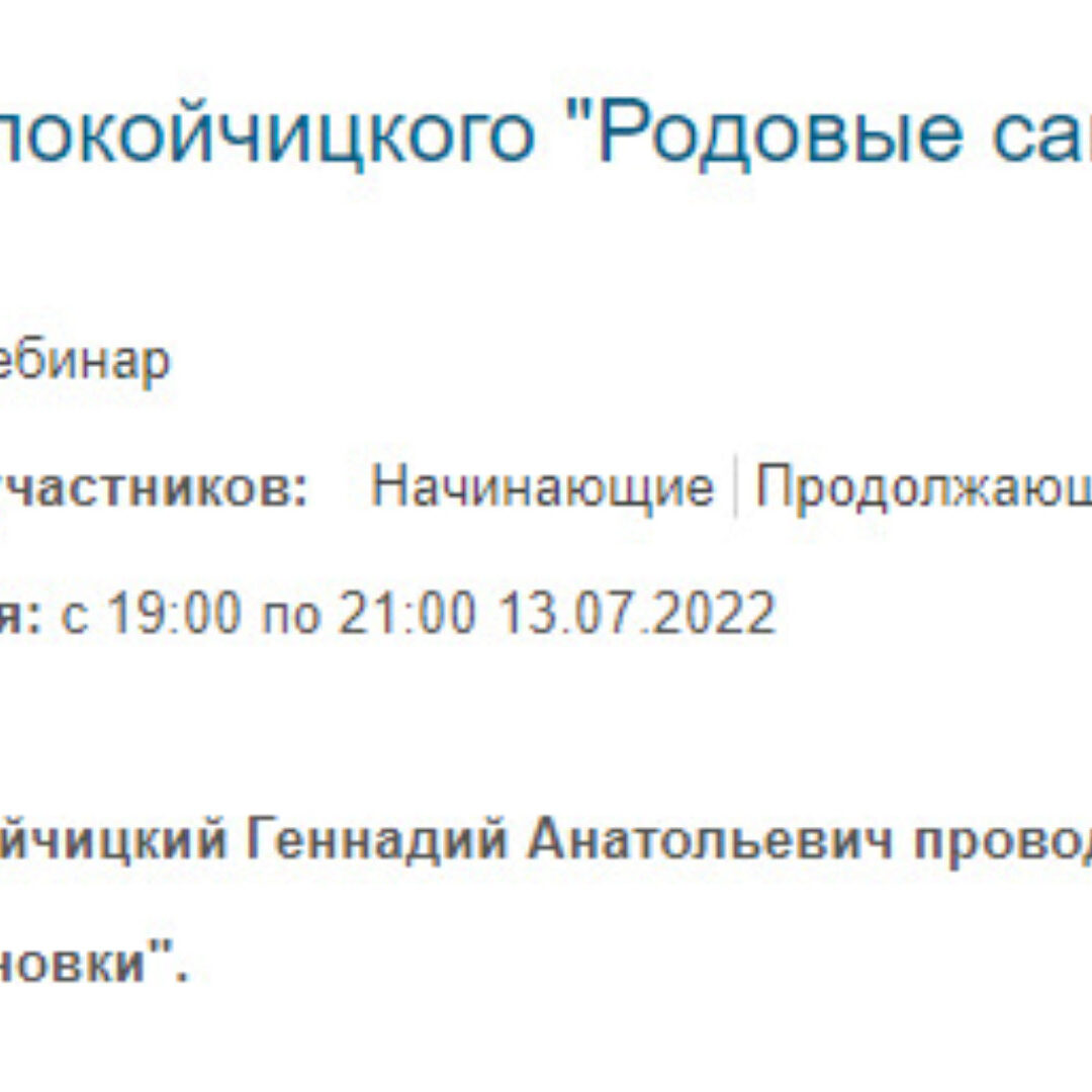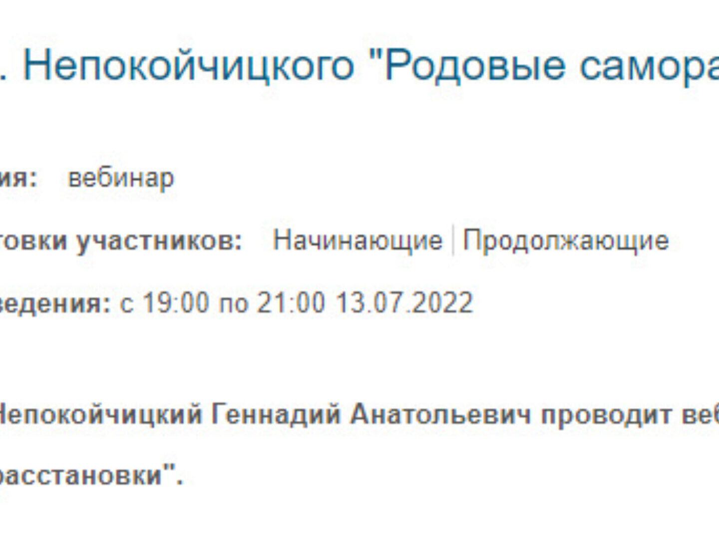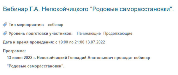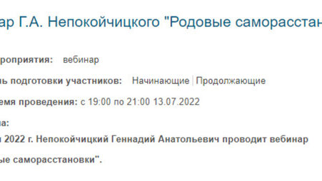 Непокойчицкий Геннадий Анатольевич проводит вебинар «Родовые саморасстановки».