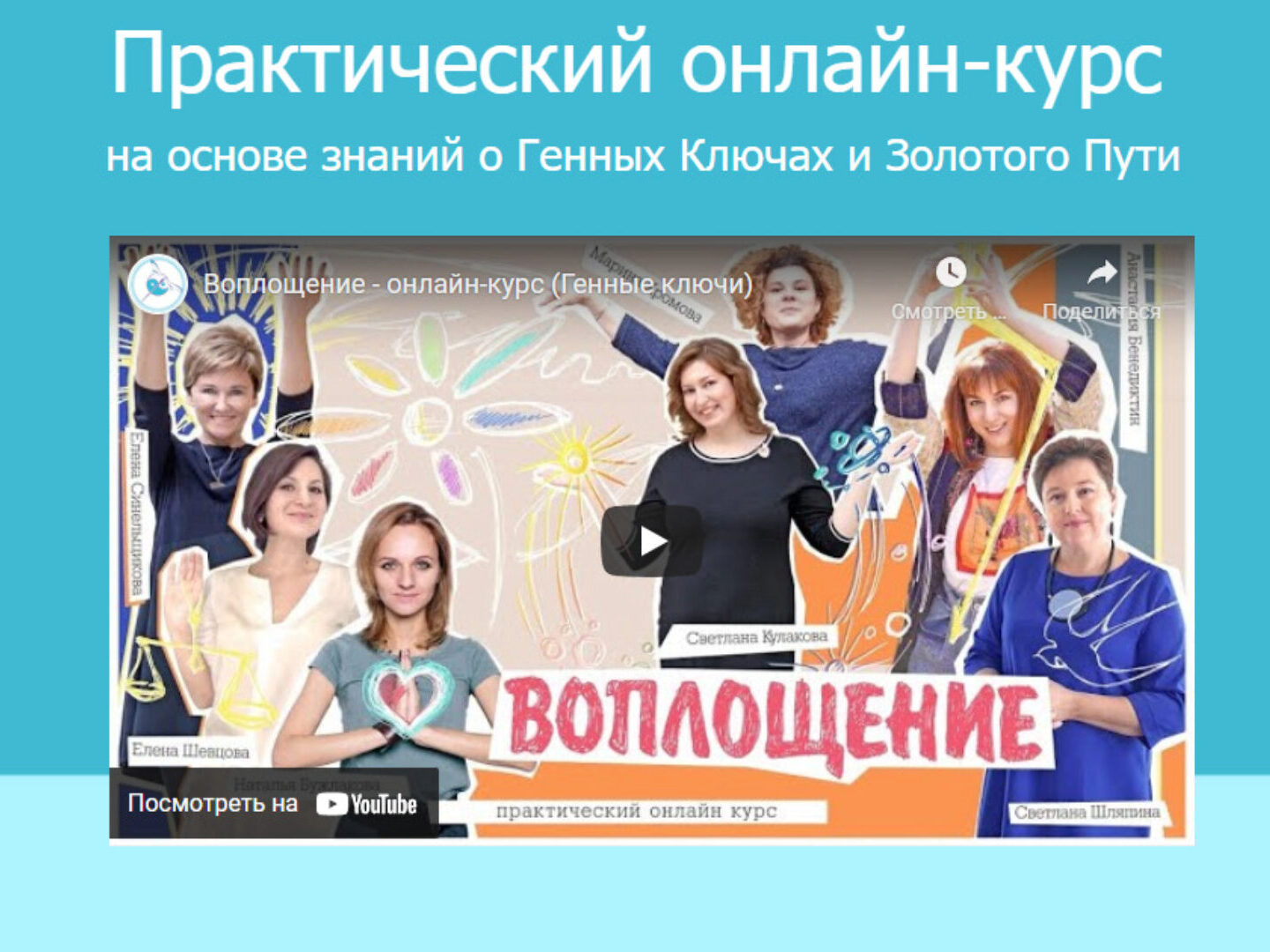 Мы, семь представительниц Международного сообщества Генных ключей России, объединенные общей любовью к передаче Генных ключей, к исследованию человеческой природы, ее потенциала и возможностей, представляем Практический онлайн-курс «ВОПЛОЩЕНИЕ». Каждая из нас, как тот лепесток волшебного цветка, готова поделиться своей силой.