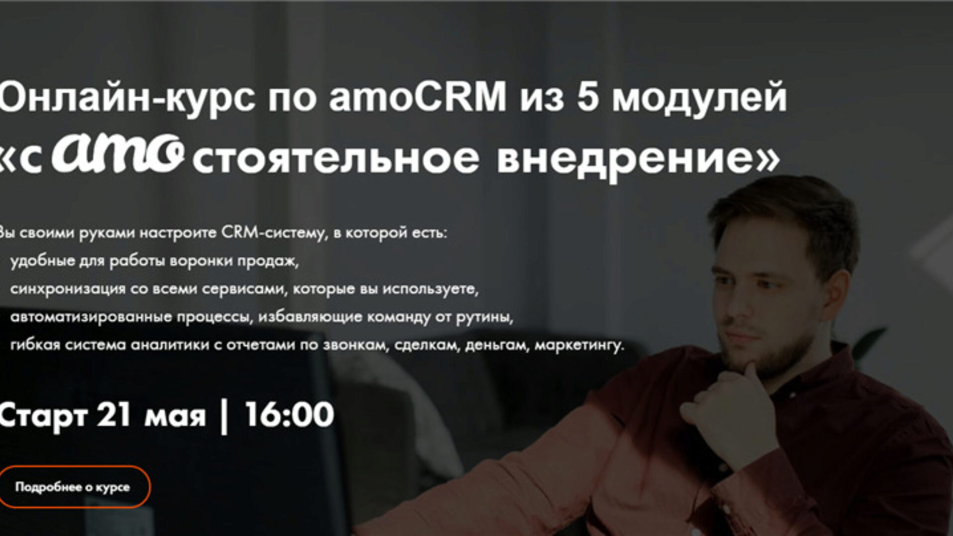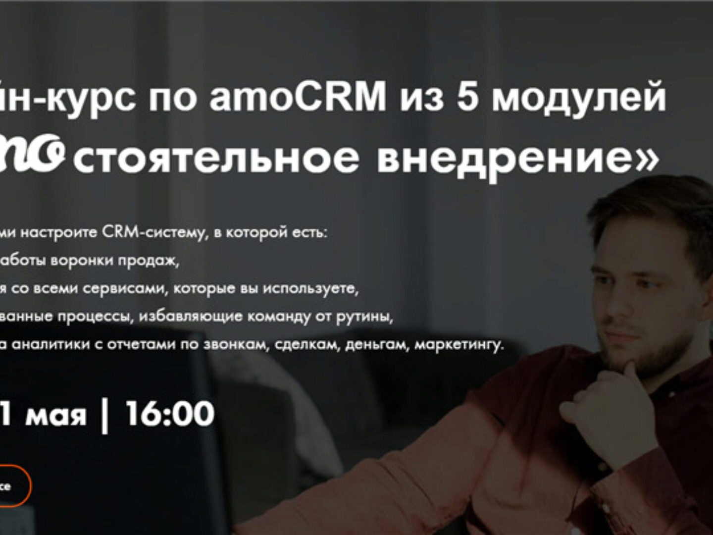 На курсе я за 5 занятий покажу на практике, как поэтапно настроить amoCRM, идеально подходящую под ваши бизнес-процессы». Нажмите для раскрытия...