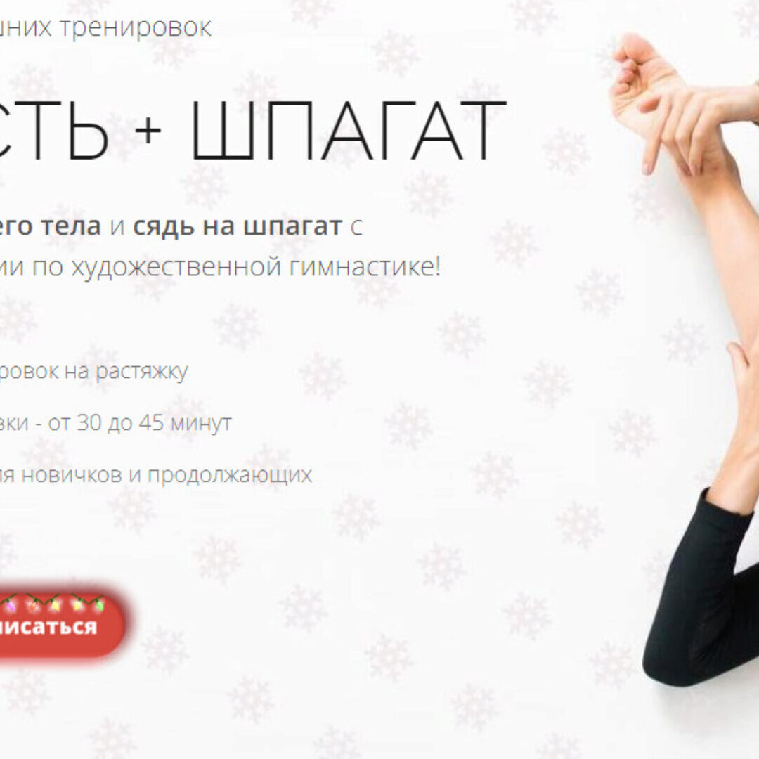 Узнайте как сесть на шпагат в любом возрасте всего за 30 дней! Этот курс для тебя, если ты хочешь: Сесть на шпагат и исполнить мечту детства Улучшить гибкость суставов и избавиться от болей в спине и пояснице Снять стресс, наладить сон и повысить уровень энергии Улучшить женское здоровье и повысить