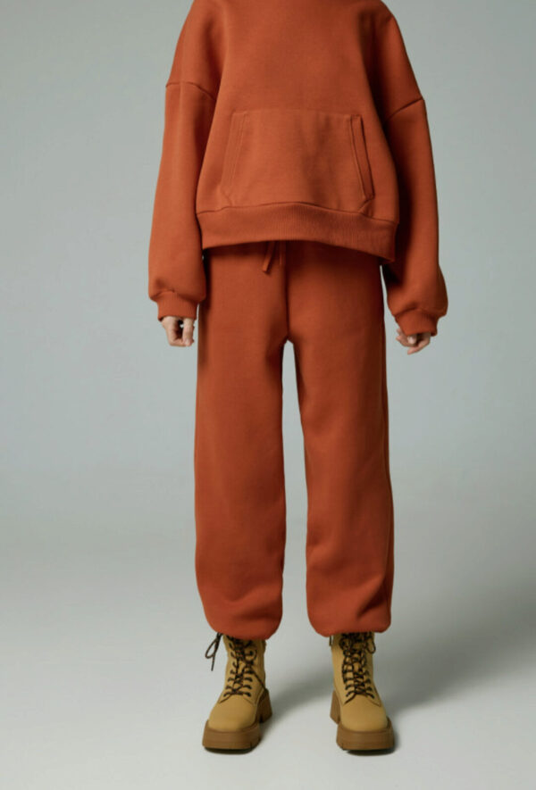 Рекомендуемый материал для пошива: трикотаж с небольшим коэффициентом растяжимости, средней плотности и плотный. Например, футер 2-нитку или 3-нитку с начесом, футер 2-нитку или 3-нитку-петля. Подкладка: кулирную гладь или другое трикотажное полотно. По составу это может быть хлопок в чистом виде или в сочетании с другими волокнами. Материал подкладки необходимо подбирать с растяжимостью соответствующей материалу верха.