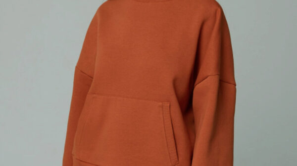 Рекомендуемый материал для пошива: трикотаж с небольшим коэффициентом растяжимости, средней плотности и плотный. Например, футер 2-нитку или 3-нитку с начесом, футер 2-нитку или 3-нитку-петля. Для деталей манжет, притачного пояса, обтачки горловины и обтачек кармана используйте материалы с большей растяжимостью, чем материал верха, например кашкорсе или рибану.