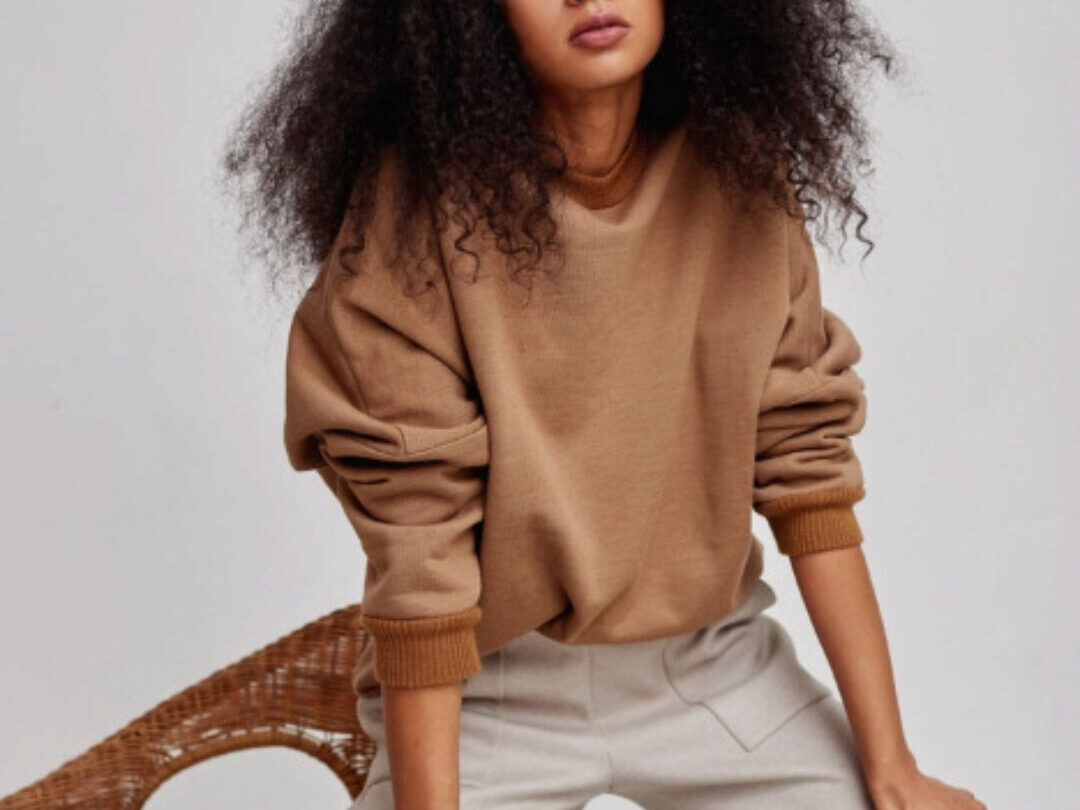 Рекомендуемый материал для пошива: для пошива модели мы рекомендуем использовать хлопчато-бумажный футер плотностью 250-300 г/м2 , с коэффициентом растяжимости 0,7 – 0,8; а также трикотаж рибана или кашкорсе для бейки горловины.