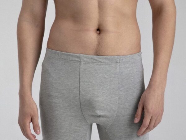 Трусы-шорты прямого силуэта умеренного объема, длиной выше середины бедер, без боковых швов. Линия талии на естественном месте. Срез талии обработан цельнокроеным поясом с эластичной тесьмой. По среднему шву передней половинки оформлен ложный гульфик.