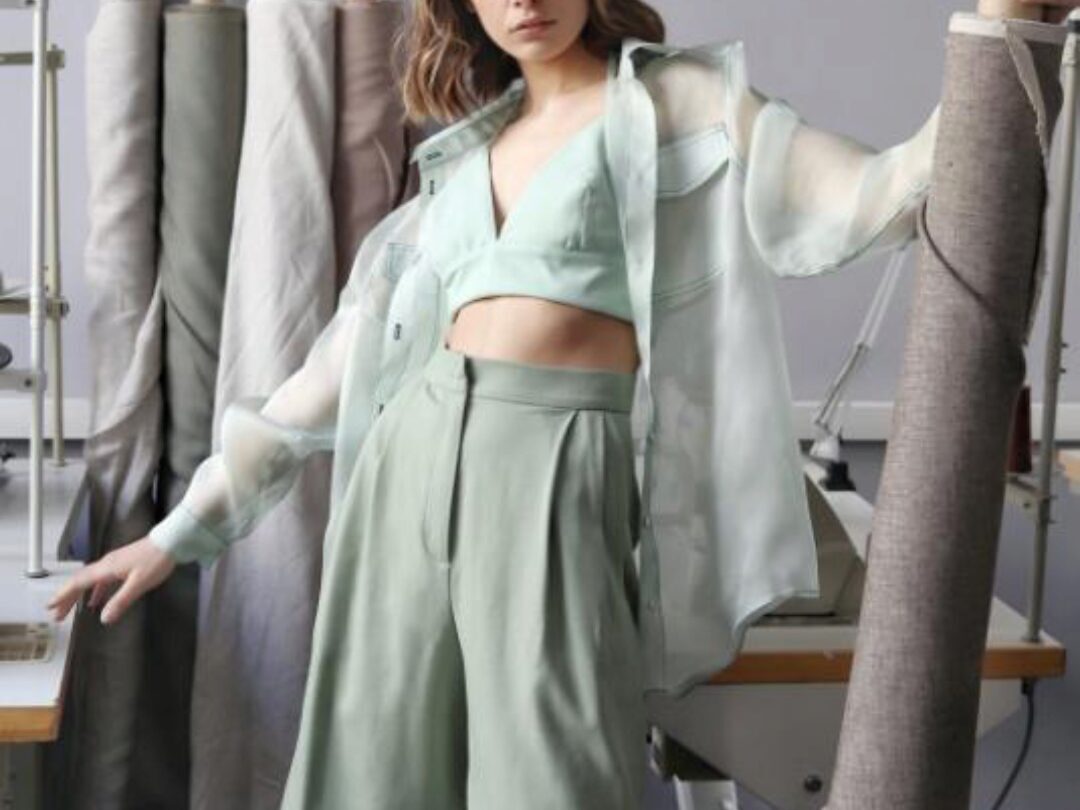 Брюки женские малого объема, прямые, длиной до щиколотки. На передних половинках брюк карманы с наклонным входом и отрезной боковой частью. По линии входа в карман притачная бейка из кашкорсе. Линия талии занижена. Верхний край пояса на 5,0 см ниже естественной линии талии. Пояс притачной, прямой,
