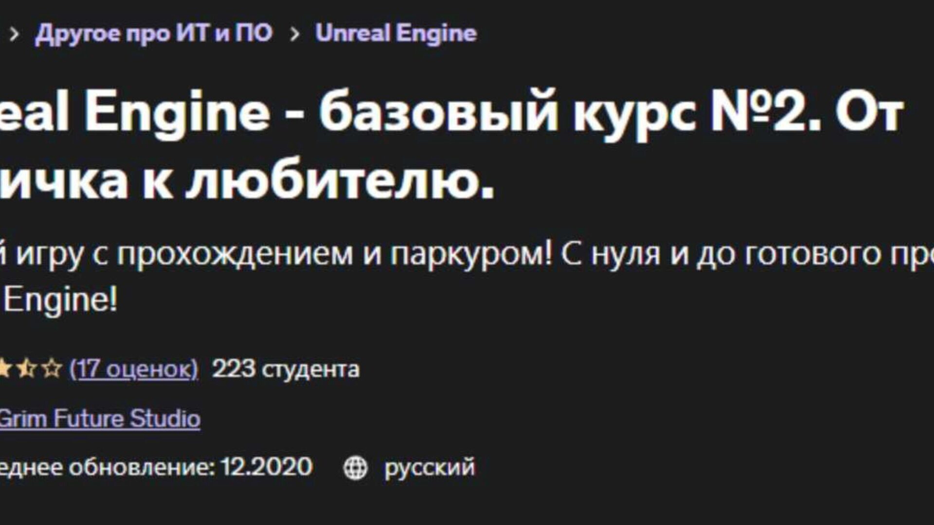 Отзывы о курсе [Udemy] Unreal Engine - базовый курс №2. От новичка к любителю (Grim Future Studio)