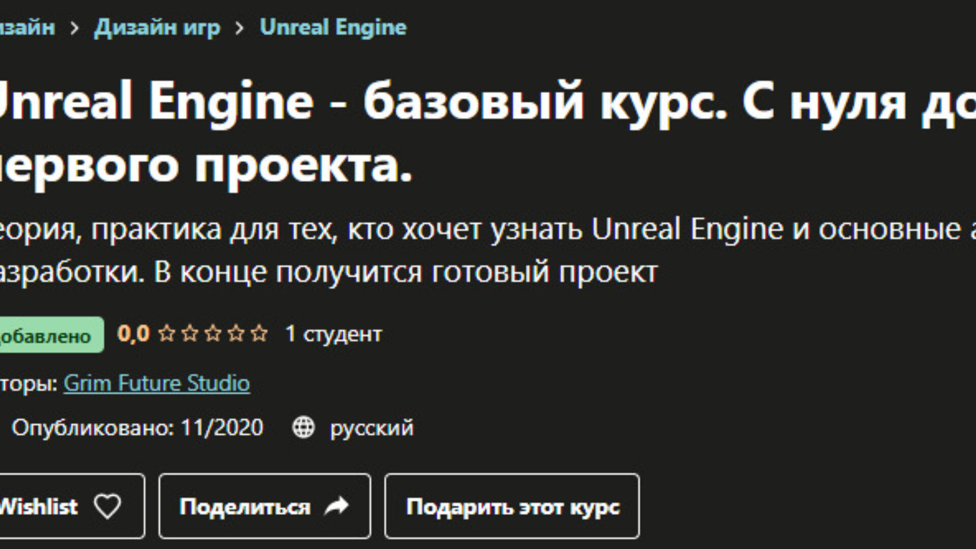Отзывы о курсе [Udemy] Unreal Engine - базовый курс. С нуля до первого проекта (Grim Future Studio)