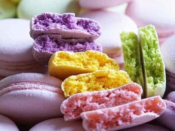 Приготовление макарон на французской меренге: Список необходимого инвентаря Рецепт крышек макарон на французской меренге Видео приготовления крышек Рецепты 3 начинок макарон: Пряничный латте Лаванда с черной смородиной Манго/Маракуйя Видео приготовления конфи Видео приготовления ганаша Видео по