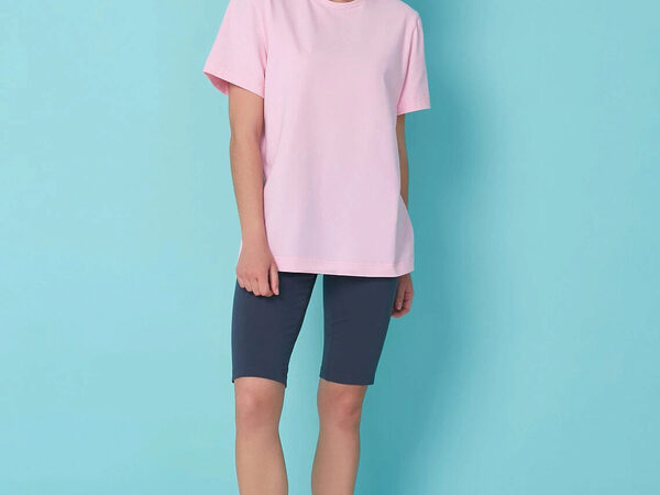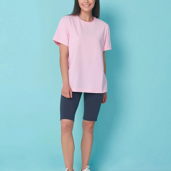 Футболка Berni. ОГ 80. Рост 158 Футболка удлинённая, прямого силуэта. Рукава длиной 3/4 со спущенной проймой. Горловина округлой формы, обработана бейкой. По горловине выполнена декоративная отстрочка на плоскошовной машине. Низ футболки и низ рукавов обработаны на плоскошовной машине. Футболка