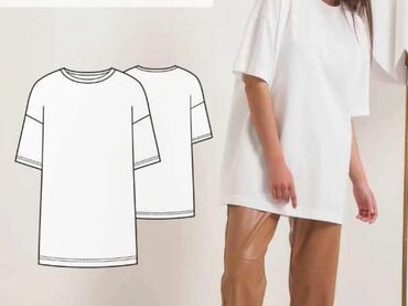 Футболка свободного кроя, рукав втачной со спущенным плечом. Горловина обработана бейкой шириной 2 см. Шов притачивания бейки по спинке обработан киперной лентой. Подгибка низа изделия и рукава - 3 см. Выкройка для печати на плоттере шириной 610мм, 914мм и принтереА4. Тестовый квадрат для настройки