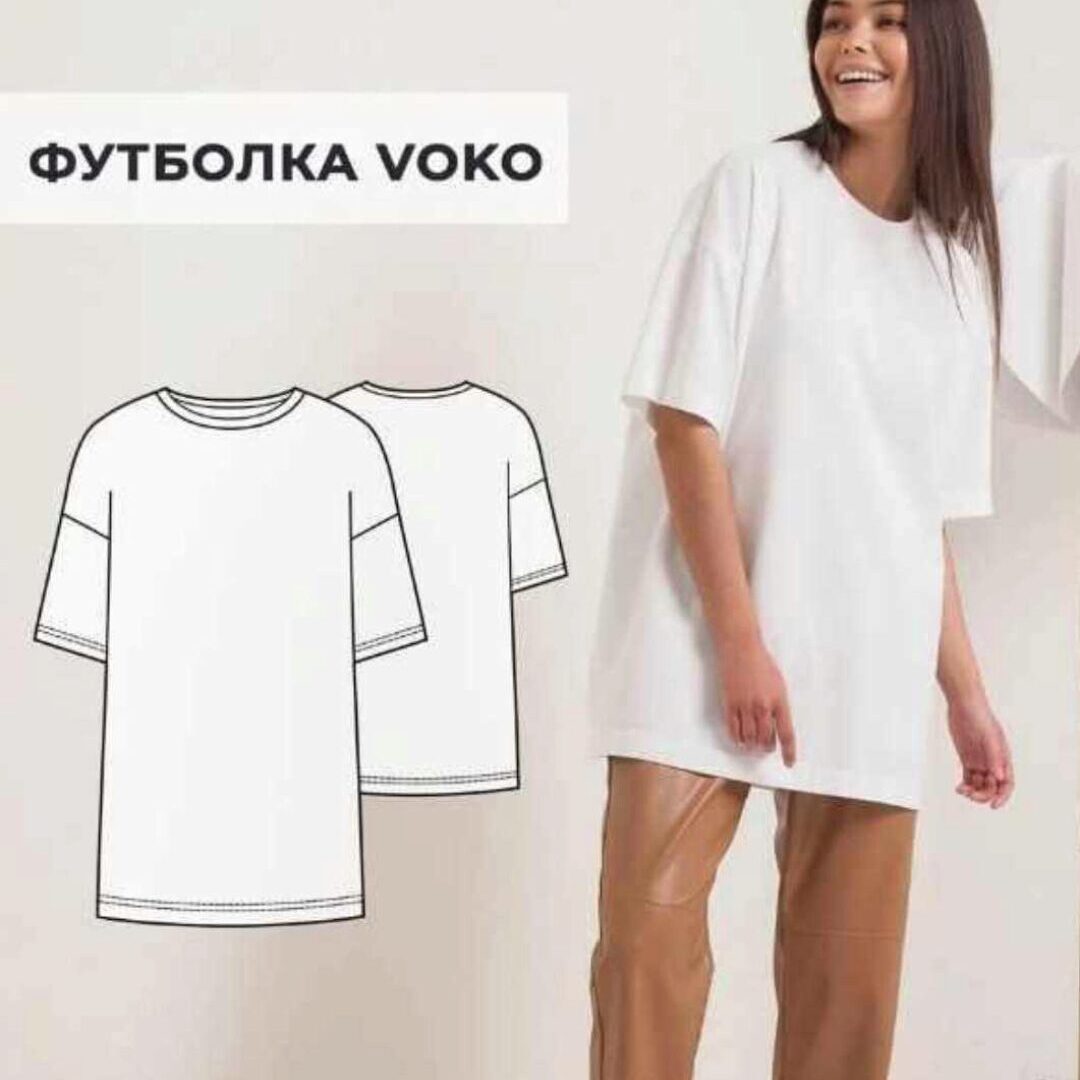 Выкройка в формате pdf. Выкройка в заказе будет в двух вариантах печати: на принтере (на листах А4) и на плоттере. Выкройка футболки. Футболка женская свободного силуэта со спущенным плечом, длиной чуть ниже бедра. Рукав рубашечный, горловина обработана обтачкой из основного материала. Прибавки,