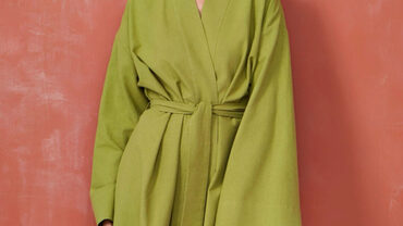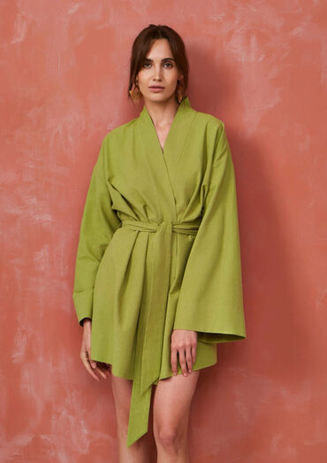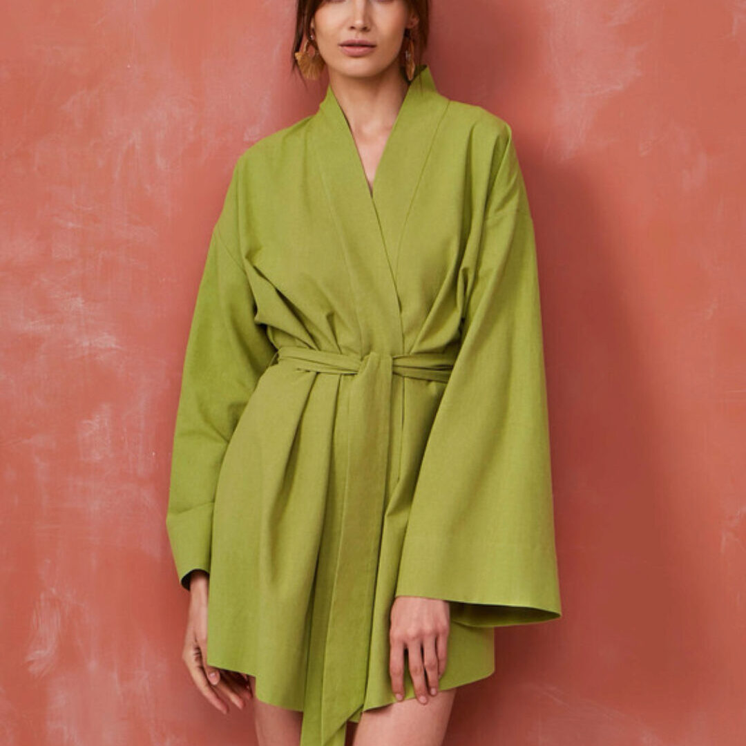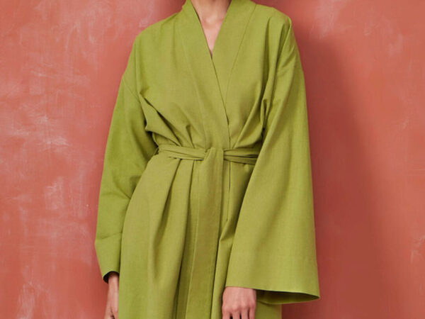 Кимоно сшито из костюмного льна, состав 100% лен, плотность 190 гр/м².