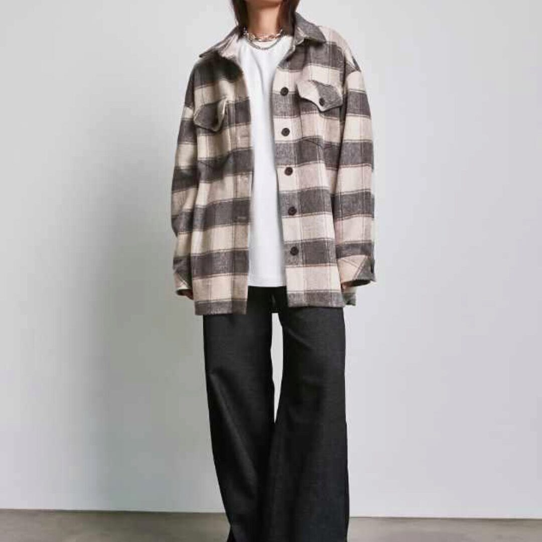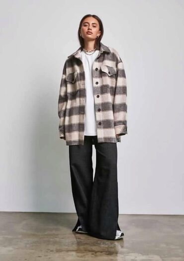 Рубашка сшита из пальтовой ткани, состав шерсть 10%, полиэстер 90% плотность 380 гр/м². Подкладка кокетки и клапанов кармана выполнена из ткани поплин, состав хлопок 100%, плотность 120 гр/м².