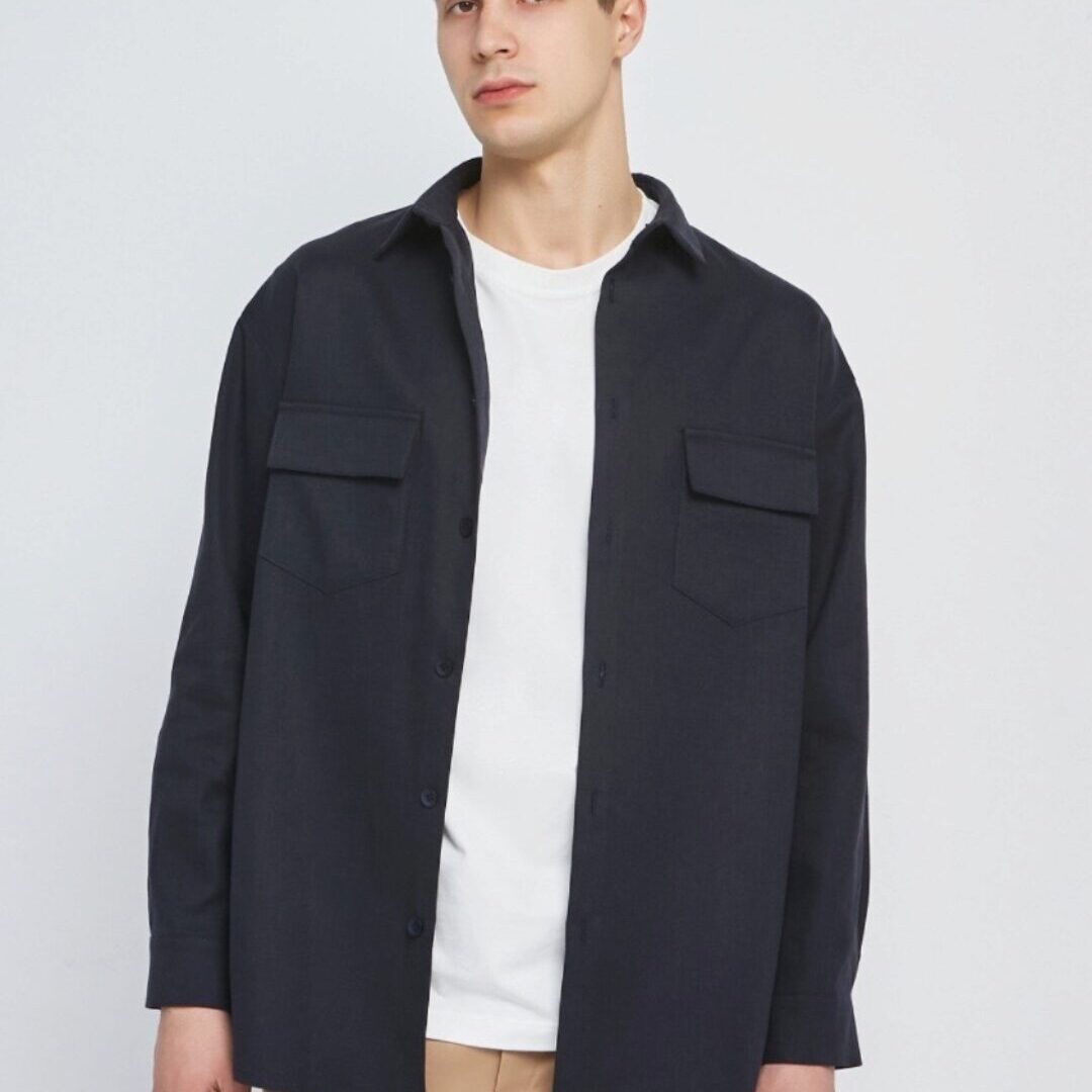 Обхват груди от 80 см до 104 см Рост от 170 см Рубашка прямого силуэта, большого объема, длиной ниже линии бедер. Перед с накладными карманами с застежкой на 1 обметанную петлю и пуговицу на стойке и с супатной (потайной) застежкой с цельнокроенными планками на 7 обметанных петель и пуговиц. Спинка