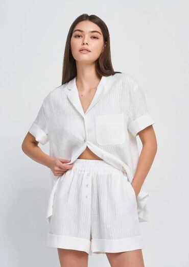 Шорты пижамные длиной до середины бедра. Пояс цельнокроенный с простроченной эластичной лентой. Высота пояса 5 см. В среднем шве передних половинок имитация гульфика с тремя пуговицами. В боковых швах карманы. По низу шорт подгибка 5 см с закрытым срезом. Обхват бедер от 86 см до 110 см Рост 164 см