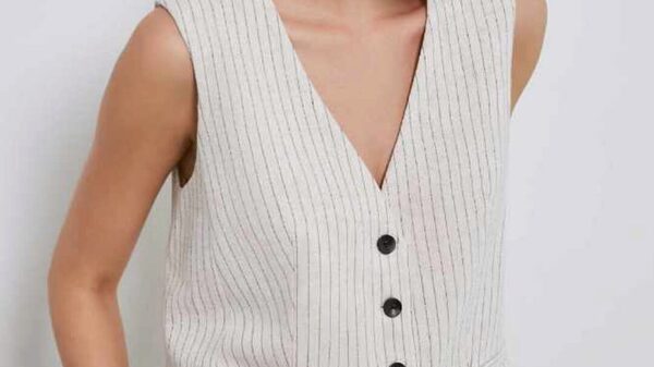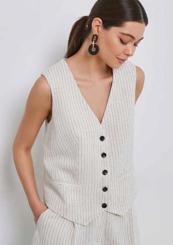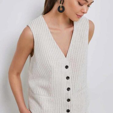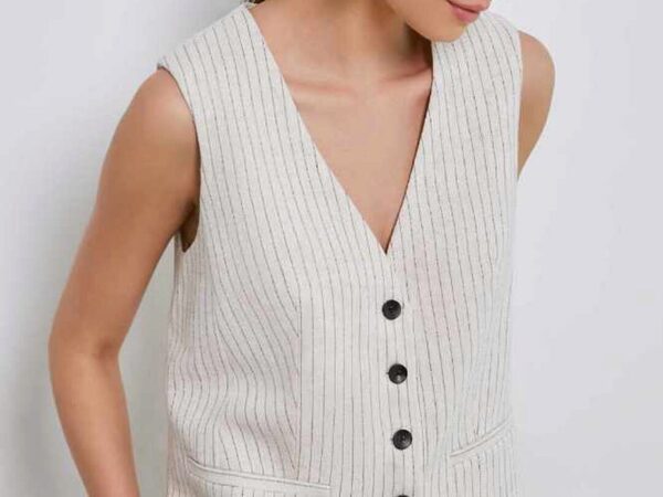 Жилет сшит из плательной ткани, состав 30% лен, 70% вискоза, плотность 150 гр/м².