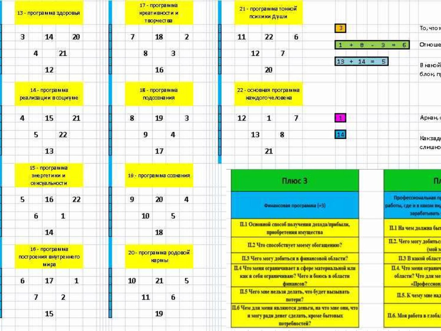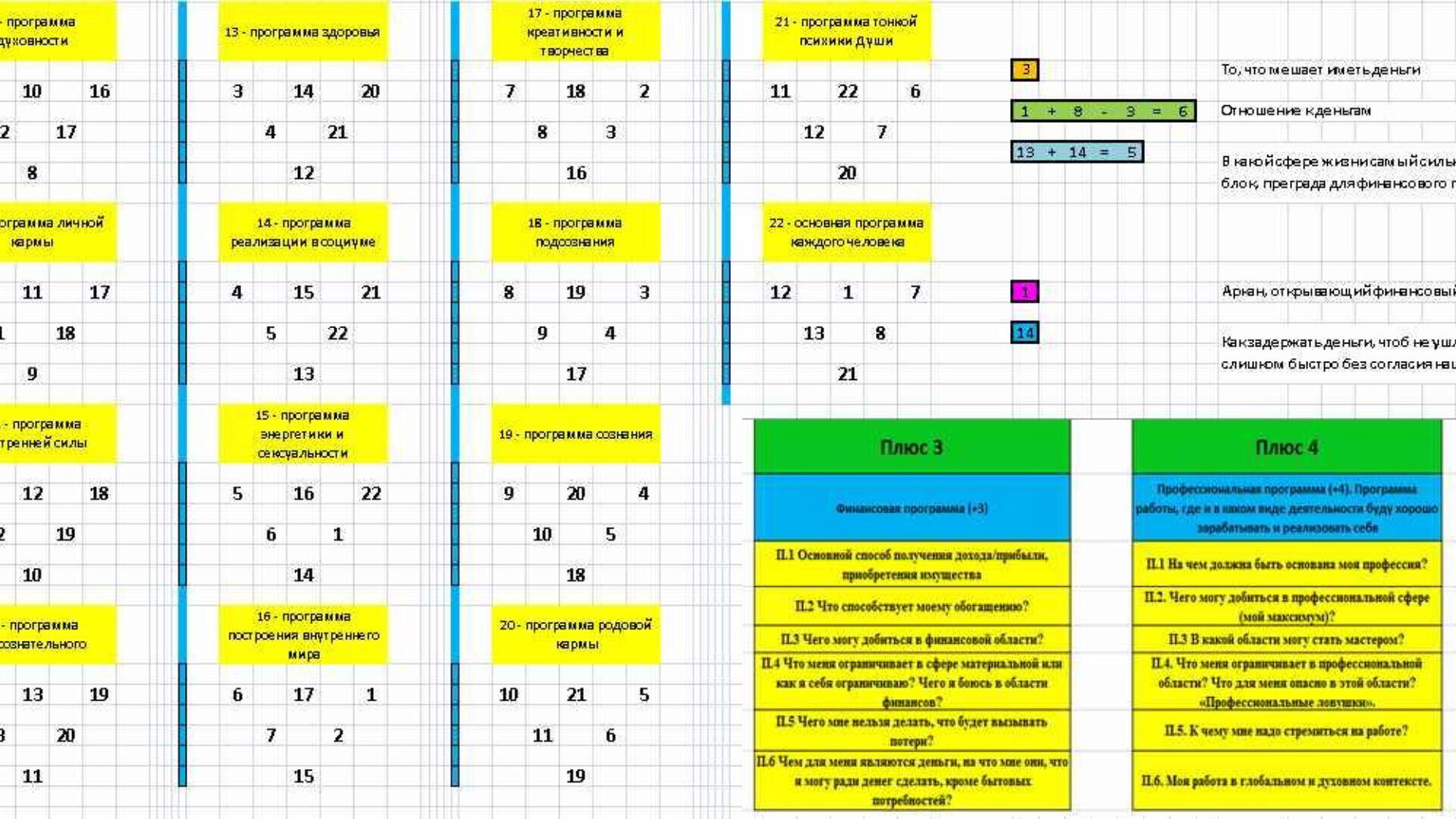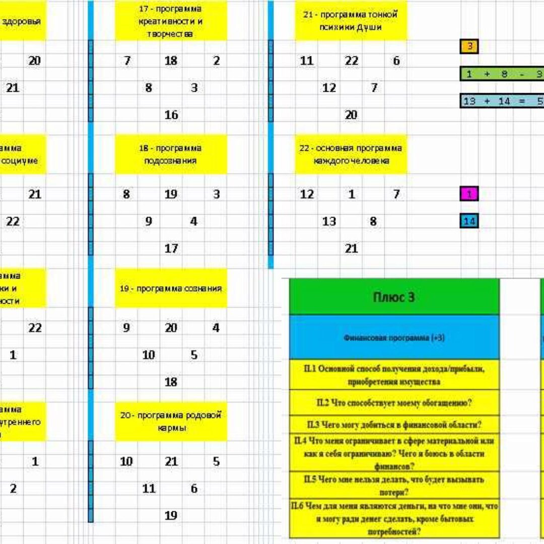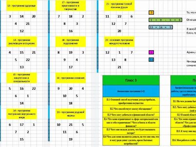 Причем в нем заложены 22 программы. Например, 3 - финансовая программа, 4 - профессиональная программа. И всегда можно посмотреть быстро, где больше денег или что мешает их иметь. Также к программам есть ключи. На фото есть маленькая часть этих ключей.
