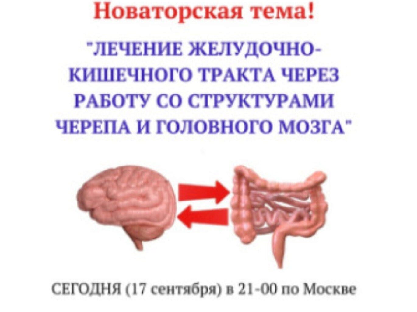 На сегодняшнем семинаре мы ВПЕРВЫЕ разберём самые современные представления о взаимосвязях между органами желудочно-кишечного тракта, структурами черепа и головного мозга.