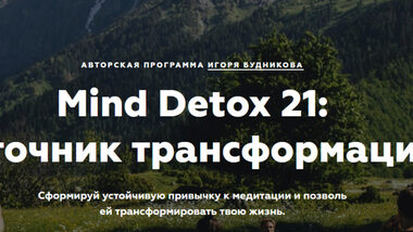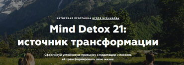 ЛЕГЕНДАРНЫЙ КУРС ПО МЕДИТАЦИИ ДЛЯ НАЧИНАЮЩИХ ОТ ИГОРЯ БУДНИКОВА Mind Detox 2.0, улучшенный и дополненный Если ты чувствуешь, что время познакомиться с медитацией для тебя уже пришло, то поздравляю — сейчас перед тобой редкая и ценная возможность. За последние пять лет через мои онлайн и живые