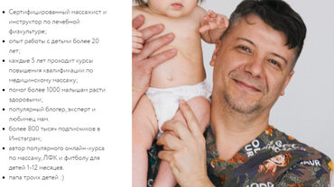 Описание: Ежедневный комплекс массаж + гимнастика + фитбол по минутам + методика занятий в 87 уроках (2-3 мин) с подробным видео и письменными инструкциями + обратная связьот массажиста с возможностью индивидуальной коррекции курса. Доступ 90 дней. Программа: тестирование ребёнка на повышенный