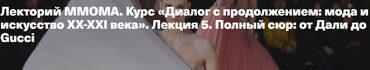 Отзывы о курсе Диалог с продолжением: мода и искусство XX-XXI века». Лекция 3. Полный сюр: сюрреализм и мода, от Дали до Gucci от Илектры Канестри
