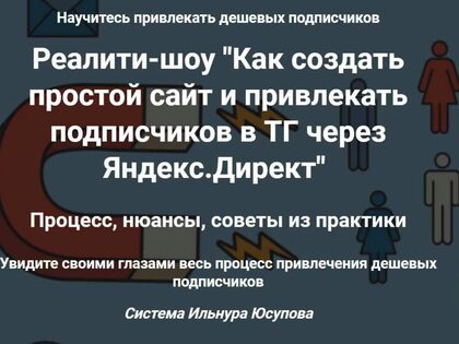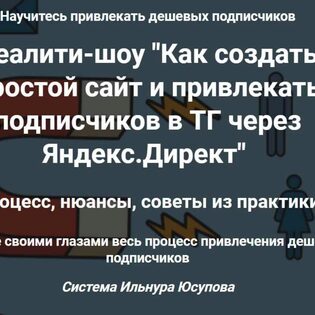 Ильнур Юсупов «Как создать простой сайт и привлекать подписчиков в ТГ через Яндекс.Директ»
