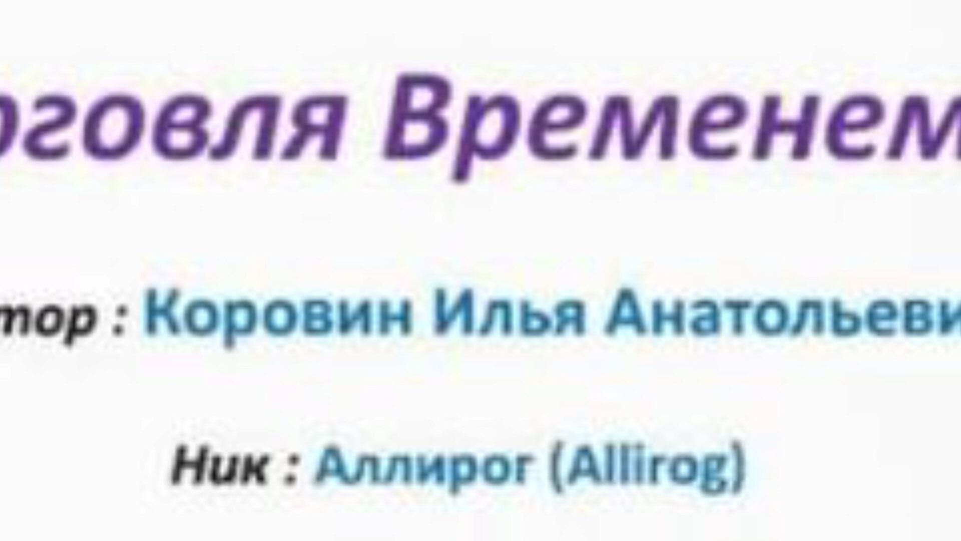 Илья Коровин «Торговля временем - 2»