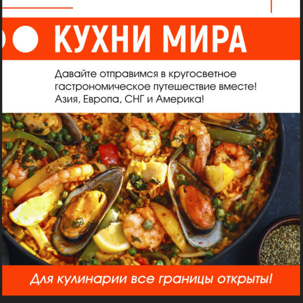 на курсе Вы освоите более 40 блюд из 7 разнообразных кухонь всего мира и отправить себя и своих близких в настоящее гастрономическое путешествие.