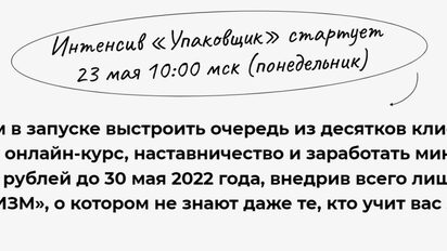 Лучшее, что я могу вам предложить - это пригласить на большой интенсив «УПАКОВЩИК»