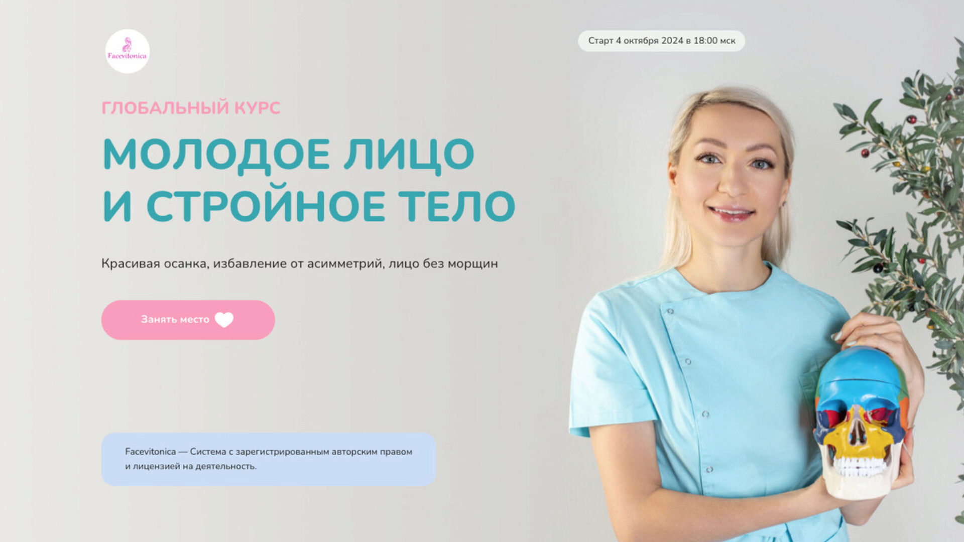 Глобальный Курс. Молодое лицо и стройное тело — это научный подход в омоложении лица и выстройки стройного тела Мы проанализировали мировые исследования по старению лица и Тела, выявили ключевые зоны на теле и ключевые точки на черепе, отвечающие: за процесс старения тела и шеи за старение и