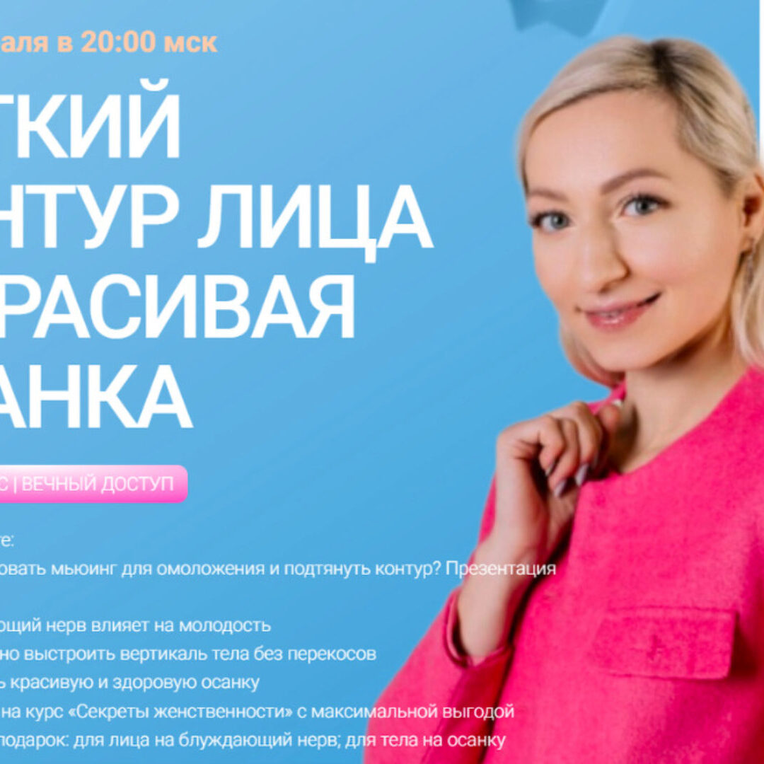 Старт курса - февраль 2024 Модуль 1 Техники от Инны Алферовой Для четкого сексуального контура лица Для работы с диафрагмой Для красивой длинной шеи Для ровной аристократической осанки Для более ярких ощущений с партнером Для тонкой талии Модуль 2 Про правильный мьюинг от приглашенного эксперта