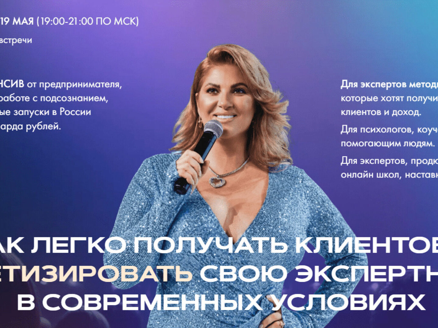 ЭТОТ КУРС ДЛЯ ТЕБЯ, ЕСЛИ: Ты хочешь собрать большие офлайн-мероприятия, огромные залы, но ты не знаешь, как это сделать Ты хочешь работать со звездами, топовыми клиентами, которые станут твоими друзьями Ты прошел много онлайн-курсов и до сих пор не признался себе в том, что на самом деле хочешь