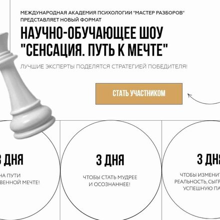 В ходе научно-обучающего ШОУ, Вы научитесь мыслить, как ведущий гроссмейстер – виртуозно управлять реальностью и событиями, выбирая из множества вариантов стратегию победителя.