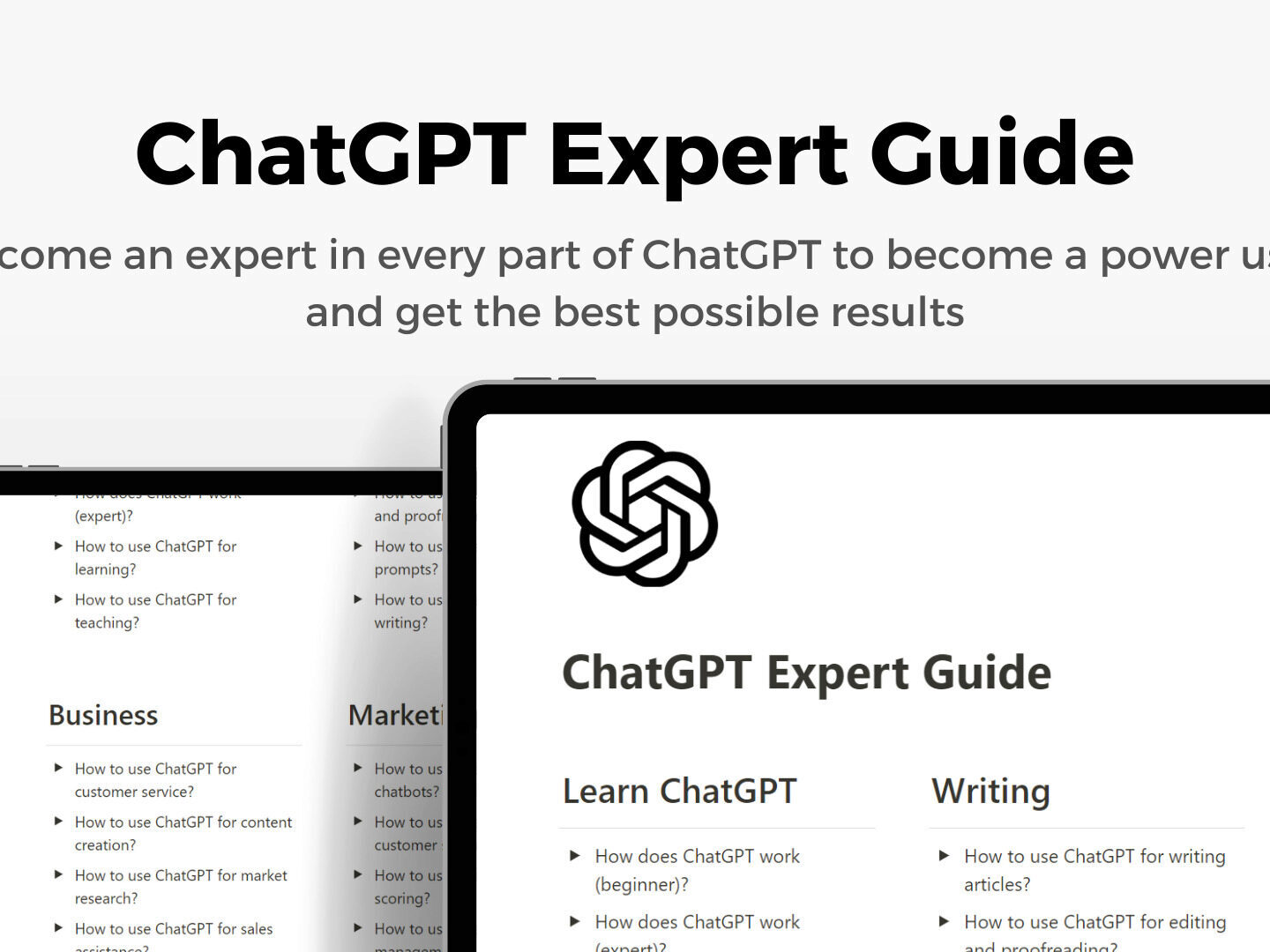 С этим руководством вы получите более 34 тщательно отобранных статей с более чем 158 пошаговыми инструкциями по использованию ChatGPT, а также более 113 точных шагов, которые помогут вам получить навыки и знания, необходимые для того, чтобы стать экспертом по ChatGPT.