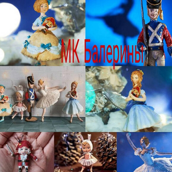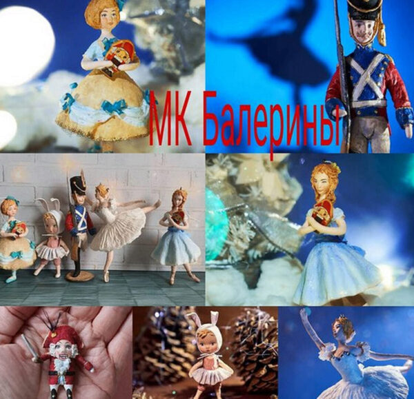 1. Делаем все игрушки,что на фото (два образа Мари с Щелкунчиком,балерину в пачке,стойкого оловянного солдатика,мини щелкунчика,зайку-балерину по иллюстрации Гапчинской)