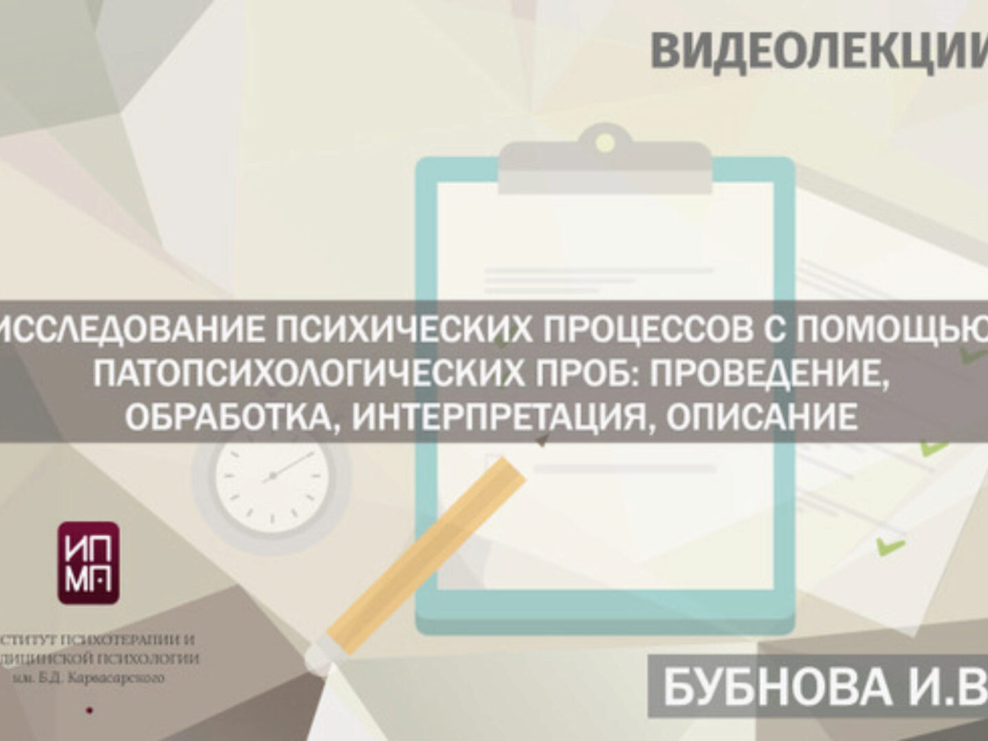 Ирина Бубнова «Исследование психических процессов с помощью патопсихологических проб» — ИПМП им. Б.Д Карвасарского