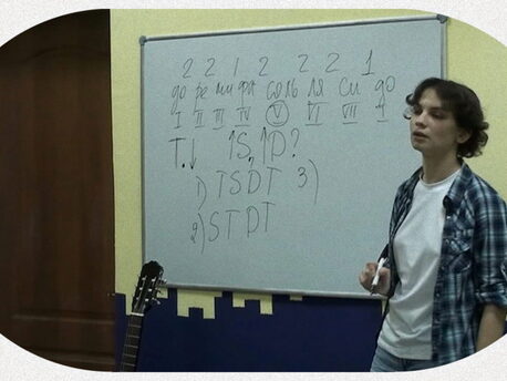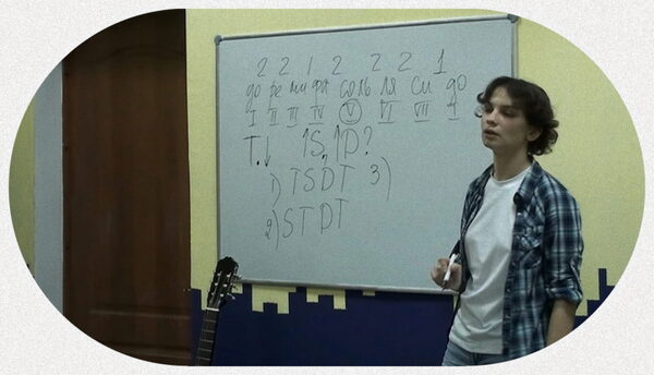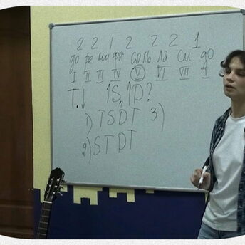 - В течение всего курса занятий — подбор по слуху и анализ. Взяли песню — разбираем и записываем на доске структуру, аккордовую сетку, а потом подбираем и пишем саму мелодию. Подбирать станет легко, в чём-то даже скучно.