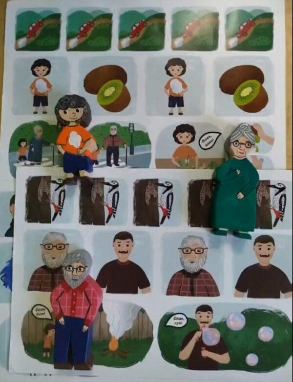 Пособие включает: - 20 карточек - действий - 20 карточек - нелепиц - 20 карточек - действий в прошедшем времени - 20 пиктограмм - 20 картинок предметов (отвечающие на вопрос «ЧЕМ» ) - 20 картинок предметов (отвеч. на вопрос «ЧТО») - 4 плашки для ассоциативного ряда - 12 картинок (отвечает на «КТО»)