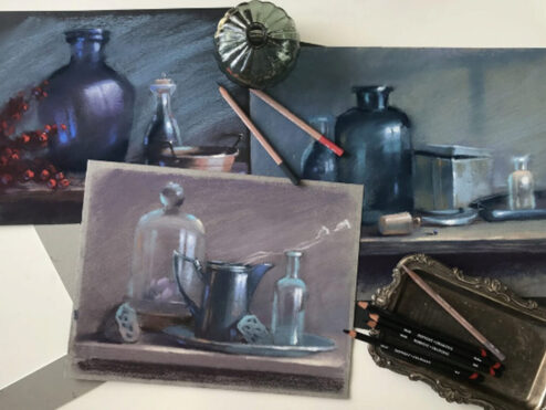 Вдохновившись посудой разных стран и эпох, художник-пастелист Ирина Климова разработала и записала новые мини-курсы по пастельной живописи. Всего за несколько уроков учимся передавать физические свойства стекла и вписывать посуду в стильные винтажные композиции.