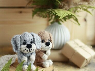 В формате PDF. 23 стр, 65 фотографии процесса. Все детали вяжутся на трёх спицах, четвёртая рабочая. Уши крючком. Голова и лапки пришиваются. Готовая игрушка получается 14 см. Есть короткие ряды в технике « Оберни и поверни » . Содержит описание свитера. Основная пряжа Alize Alpaca Royal. Спицы 1,8
