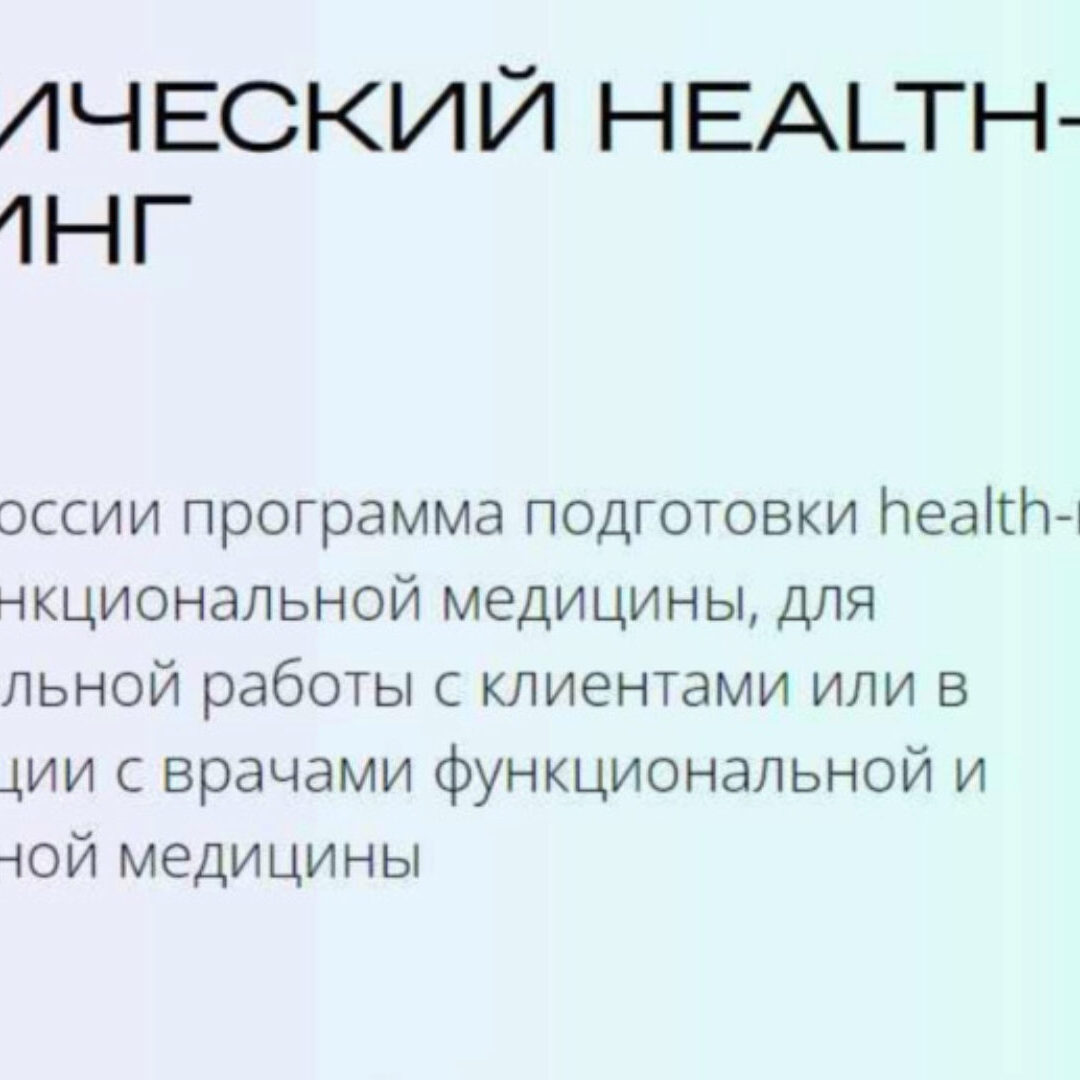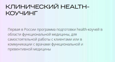 Первая в России программа подготовки health-коучей в области функциональной медицины, для самостоятельной работы с клиентами или в коммуникации с врачами функциональной и превентивной медицины Это комплексная экспертная программа подготовки health-коучей-консультантов в области функциональной